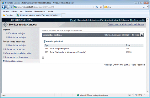 [Contador principal]Muestra el número de páginas imprimidas para cada contador.