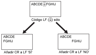 Le permite especificar si se añadirá un retorno de carro (CR) cuando se reciba el código de cambio de línea (LF).