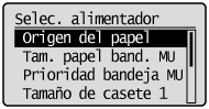 [Casete 2] se mostrará únicamente cuando esté(n) instalado(s) el(los) alimentador(s) de papel opcional(es).
