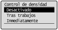 Ejecuta enseguida el control de densidad después de ACTIVAR la impresora. Si el control de densidad se ejecuta inmediatamente después de ACTIVAR la impresora, tardará unos instantes antes de poder imprimir.