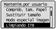 En la pantalla se muestra "Limpiando..." y comienza la limpieza de la cinta de transferencia.
