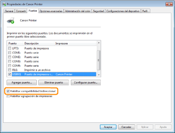 Habilite la comunicación bidireccional y reinicie el ordenador y la impresora.