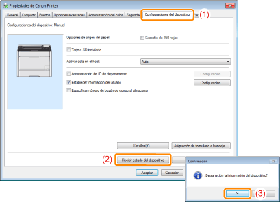 Haga clic en [Sí] para obtener el estado del alimentador de papel.