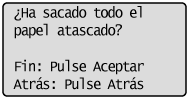 Refiriéndose al procedimiento de la pantalla, siga los pasos que se indican a continuación para eliminar documentos atascados.