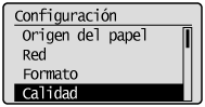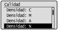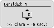 Cuando ajuste la densidad de tónerAjuste la densidad del tóner gradualmente, imprima los datos de impresión defectuosos desde el ordenador y, a continuación, compruebe los resultados de impresión. Si no puede ajustar la densidad, restablezca la densidad al valor predeterminado "0" y, a continuación, póngase en contacto con su distribuidor autorizado local de Canon.