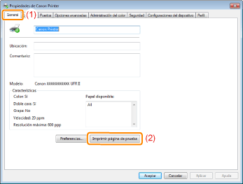 Para imprimir una página de prueba, haga clic en [Imprimir página de prueba].