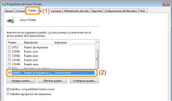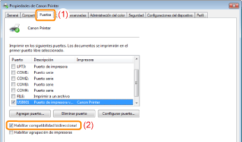 No quite la marca de la casilla de verificación [Habilitar compatibilidad bidireccional].Si quita la marca de la casilla de verificación, no podrá realizar impresión.
