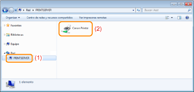 Seleccione el servidor de impresión en [Red] o [Mis sitios de red].