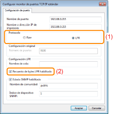 Para habilitar el recuento de bytes de LPR, marque la casilla de verificación [Recuento de bytes LPR habilitado].