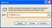 Escriba "D:\Maninst.exe" en [Buscar programas y archivos] o [Iniciar búsqueda] en el menú [Iniciar].