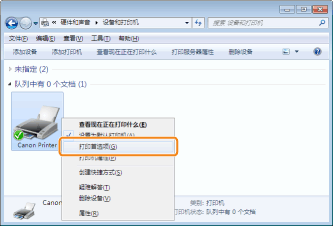 右键单击要指定设置的打印机图标 → 单击 [打印首选项] (或 [打印首选项])。