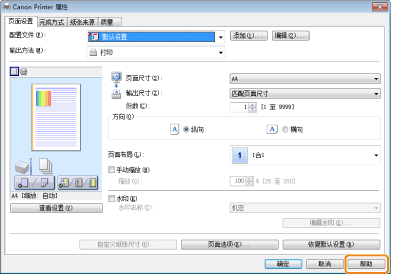 单击打印机驱动程序屏幕上的 [帮助] 可显示联机帮助。