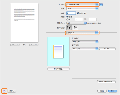 单击 [页面设置] 对话框 或 [打印] 对话框中的 [