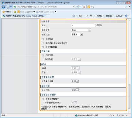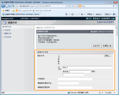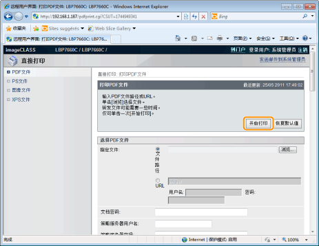 指定 URL 并打印时,完成 PDF 下载或终止与 Web 服务器的连接后,才可执行下一项打印作业。