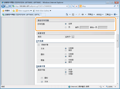如果要指定打印范围,选择 [页],然后输入起始页码和结束页码。
