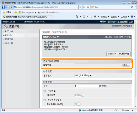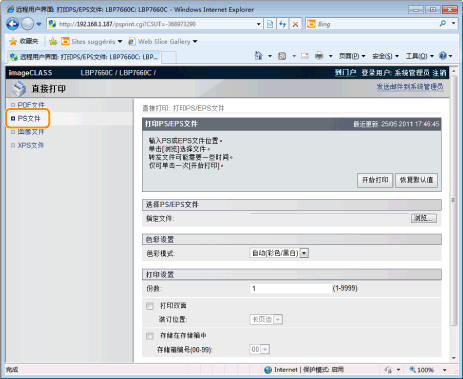 要直接打印 PS/EPS 文件必须安装选配的 PS ROM。