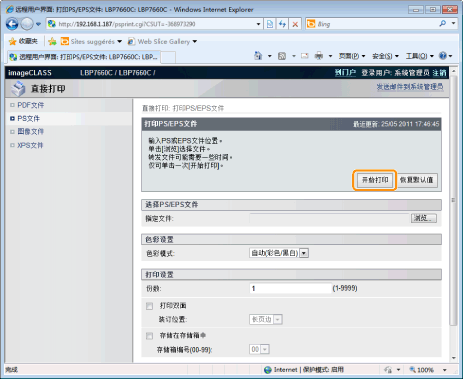 文件正在传送时,请勿一直单击 [开始打印]。有时传送文件需要时间,但是如果在传送过程中一直单击,可能会发生文件损坏并可能无法传送。
