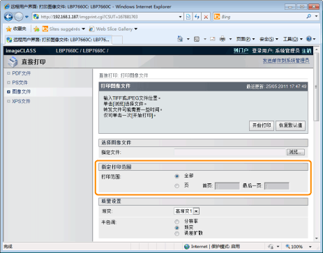 如果要指定打印范围,选择 [页],然后输入起始页码和结束页码。