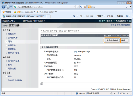 接收电子邮件打印机只有联机时才能接收电子邮件。