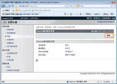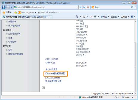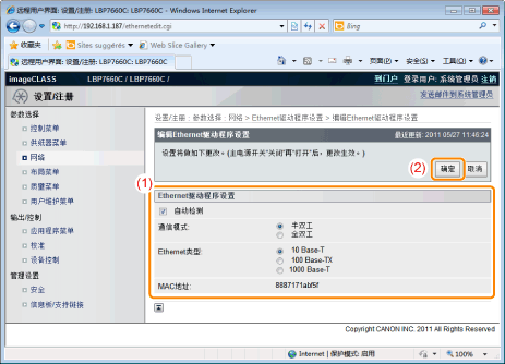 使用 [Ethernet类型],选择与所使用网络环境匹配的以太网类型。
