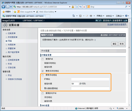 无法在 [IP地址] 和 [默认路由器地址] 中输入的地址以“ff”开头的地址(多播地址)