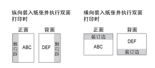指定要装订纸张的哪条边,短边还是长边。执行双面打印时,打印机根据纸面自动调整装订位置。