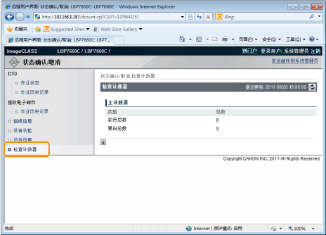可使用远程用户界面检查已打印页数。