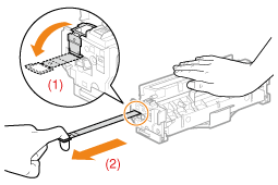 ![]() 如果密封带中途停止,请将其从硒鼓中全部拉出。如果密封带残留在硒鼓中,可能导致打印质量低。