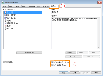 清除了 [允许选择配置文件] 和 [允许编辑设置] 复选框时,会限制选择和编辑“配置文件”。