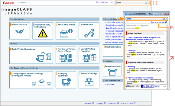Also, the AND search is available in the e-Manual so you can refine the search results by entering two or more keywords. When entering keywords, enter a space between the keywords.