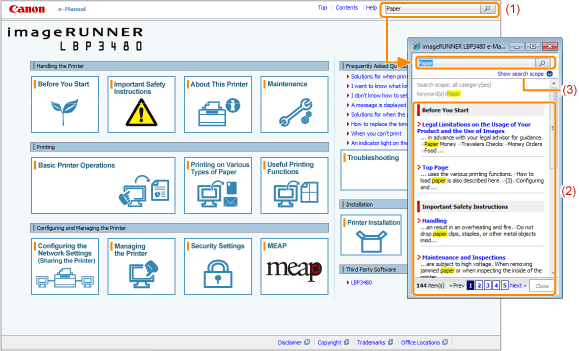Also, the AND search is available in the e-Manual so you can refine the search results by entering two or more keywords. When entering keywords, enter a space between the keywords.