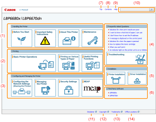 The top page of the e-Manual is displayed.