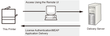You can install the System Options/MEAP Applications by accessing the delivery server from this printer.