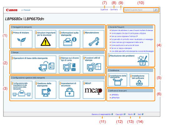 Viene visualizzata la pagina principale dell'e-Manual.