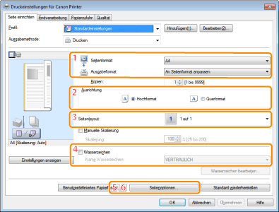 Nähere Informationen zum Anzeigen des Druckertreiber-Bildschirms finden Sie unter "Drucken über den Druckertreiber" oder "Konfigurieren der Druckeinstellungen im Voraus".