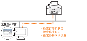 通过网络从 Web 浏览器访问和操作打印机,可使用远程位置的计算机管理打印机。