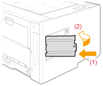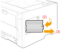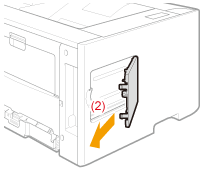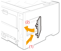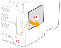 按住卡钩 (A) 的同时,将左盖打开一些。