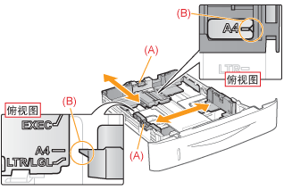 将 (B) 位置与要装入纸张的尺寸标记对齐。