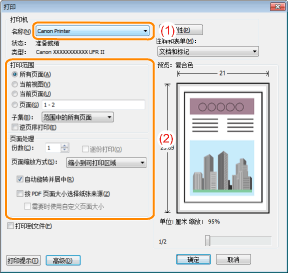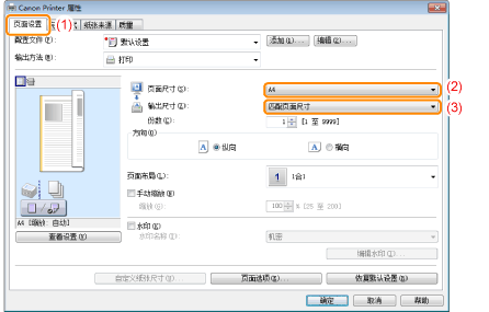 如果 [页面尺寸] 设置与 [输出尺寸] 设置不同会自动缩小或放大打印,以适合页面大小。