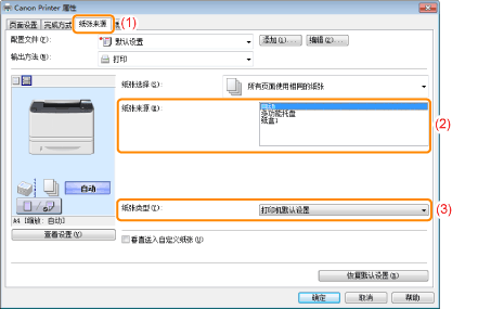 设置想要使用的纸张来源。