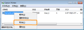 如果未出现打印作业不显示其他用户的作业。(在打印服务器环境下,打印服务器上会显示所有打印作业。)