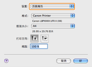 在 Mac OS X 10.5.x 中,[页面设置] 对话框因应用程序而异。