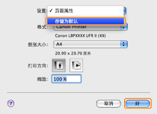 从 [设置] 选择 [存储为默认] → 单击 [好]。