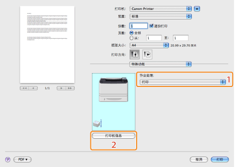 获取打印机信息(打印机型号名称、安装选项和纸张来源状态)。