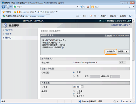 文件正在传送时,请勿一直单击 [开始打印]。有时传送文件需要时间,但是如果在传送过程中一直单击,可能会发生文件损坏并可能无法传送。
