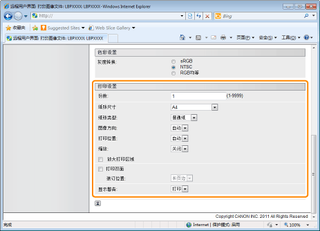 指定是否放大或缩小打印。设置为 [自动] 时,自动缩放至匹配纸张的有效打印区域并打印。