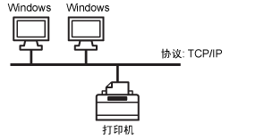 如果使用 TCP/IP 协议,可通过将网络上的 Windows 指定为打印服务器来有效地管理打印机。
