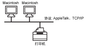 Macintosh 网络可使用 AppleTalk 协议或 TCP/IP 协议。