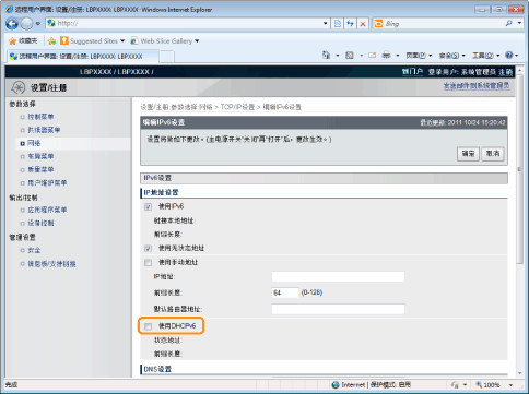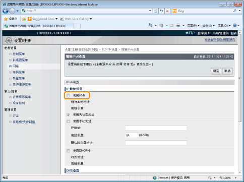 选中 [使用IPv4主机名/域名] 复选框,使用与 IPv4 相同的主机名和域名,打印机重新启动后,自动设置通过 IPv4 设置的主机名和域名。