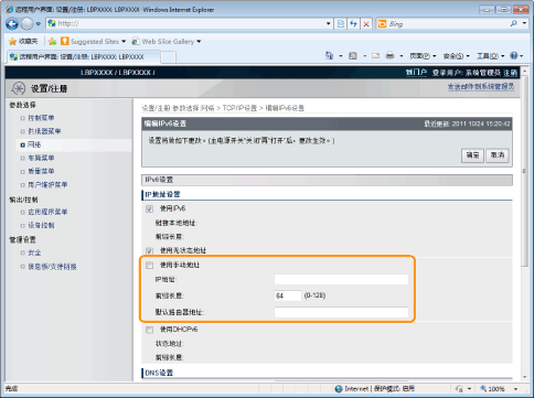 无法在 [IP地址] 和 [默认路由器地址] 中输入的地址以“ff”开头的地址(多播地址)
